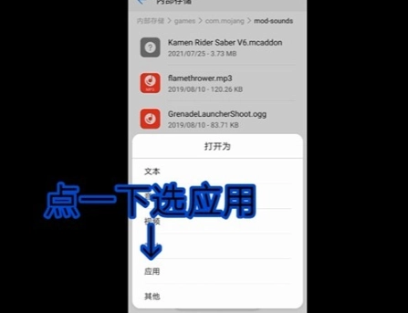 2、在文件列表里找到“Kamen Rider Saber V6.mcaddon”文件,點(diǎn)擊該文件后選擇【打開方式】選項(xiàng);