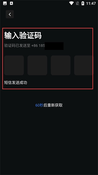 3、獲取驗(yàn)證碼后,進(jìn)入輸入界面,將收到的驗(yàn)證碼填入對應(yīng)輸入框,等待驗(yàn)證完成即可繼續(xù)登錄流程。