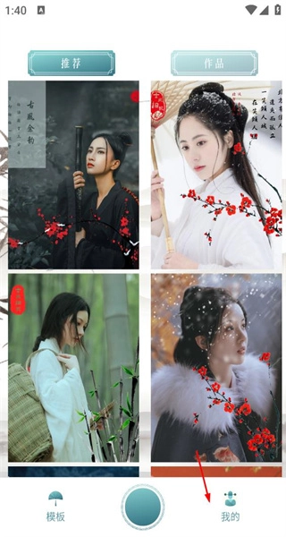 1、啟動軟件后,瀏覽推薦板塊中的古風(fēng)圖片內(nèi)容,接著點擊底部的“我的”按鈕,即可進(jìn)入對應(yīng)的設(shè)置頁面。