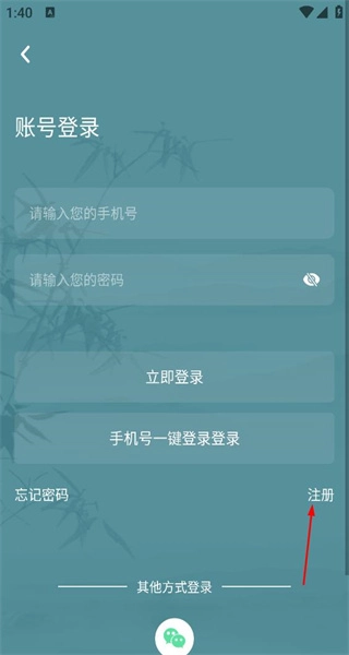3、進(jìn)入賬號登錄頁面,若還未注冊賬號,點擊頁面中的注冊選項,進(jìn)入新用戶注冊的操作頁面。
