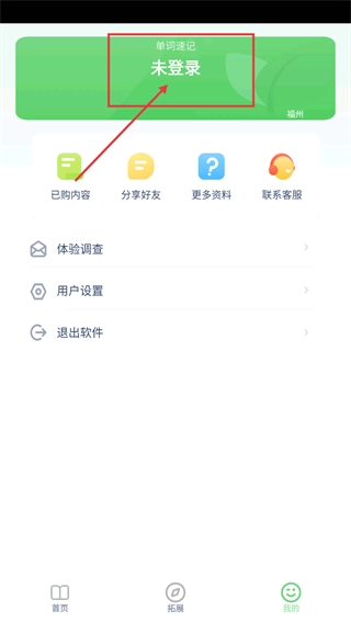3、在【我的】頁面,頂部顯示“未登錄”狀態(tài),包含已購內(nèi)容、分享好友等功能入口,點(diǎn)擊“未登錄”區(qū)域可進(jìn)入登錄流程。