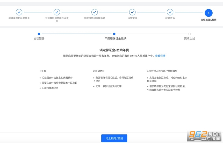 凍結(jié)保證金及技術(shù)年費(fèi),操作前請(qǐng)先確保支付寶賬戶內(nèi)有足夠的可用余額,對(duì)公賬戶或者個(gè)人支付寶轉(zhuǎn)賬頁(yè)面提示金額到