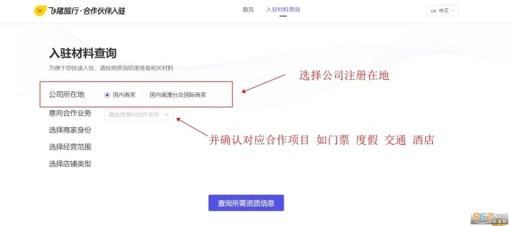 二、入駐流程說(shuō)明 申請(qǐng)入駐入口:通過(guò)鏈接https://zhaoshang.alitrip.com/join/joinNewPage.htm#/home進(jìn)入飛豬招商首頁(yè),隨后