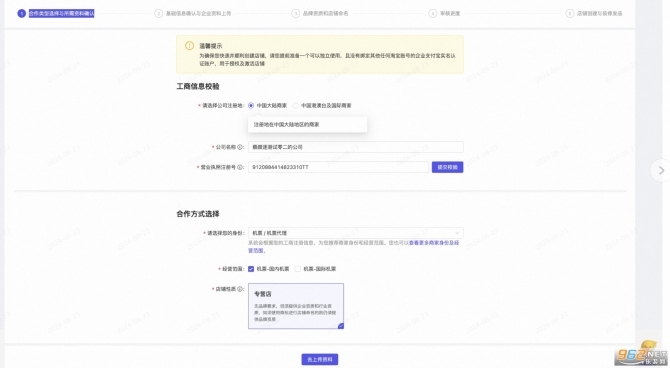 信息:主要是根據(jù)商家公司營(yíng)業(yè)執(zhí)照的注冊(cè)地來(lái)選擇是中國(guó)大陸還是中國(guó)港澳臺(tái)及國(guó)際商家的類型。填寫完信息以后點(diǎn)擊