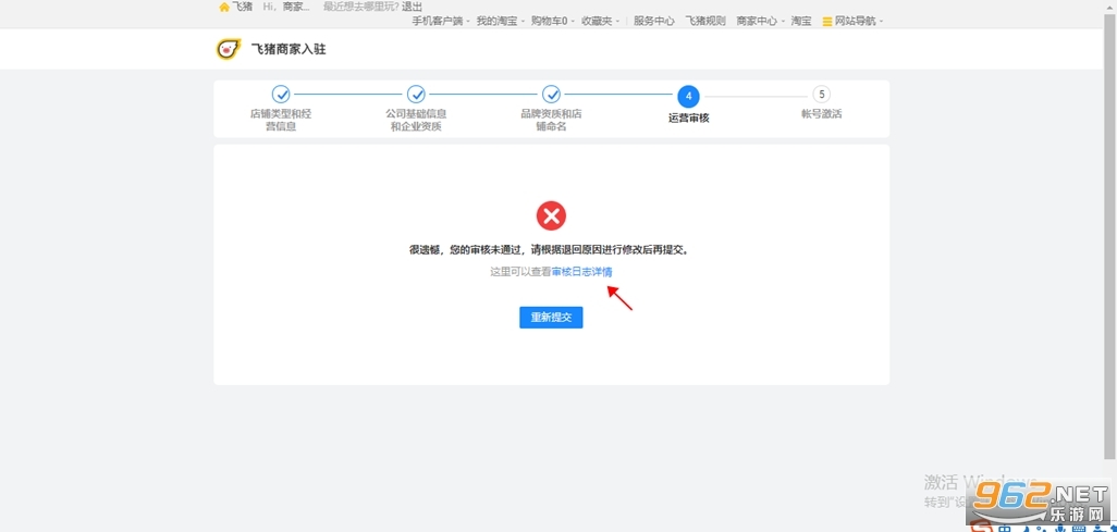 A:審核不通過(guò)頁(yè)面提示如下: