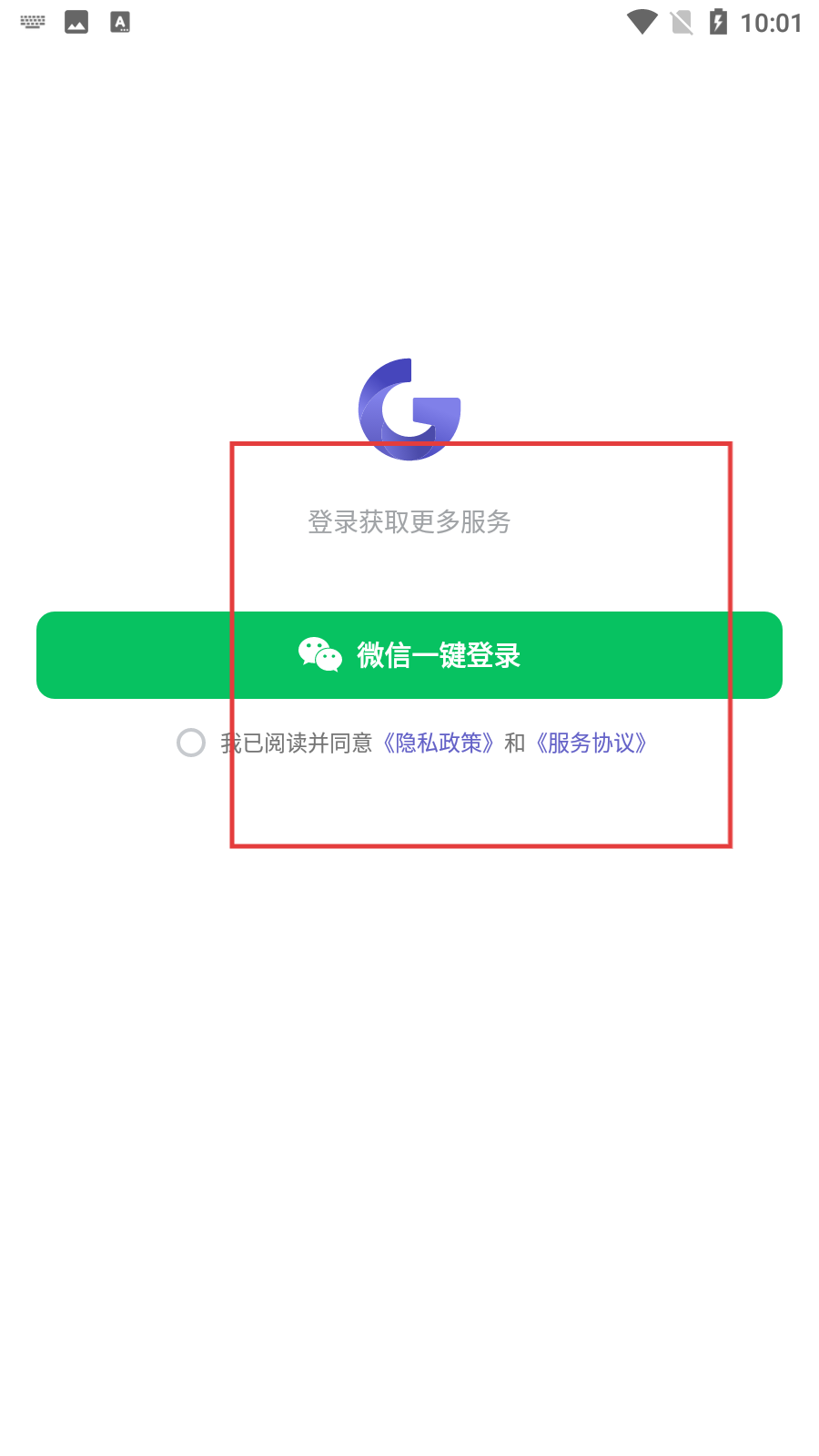 4、在登錄頁(yè)面,可選擇微信一鍵登錄,登錄前需勾選同意《隱私政策》和《服務(wù)協(xié)議》,完成登錄后可獲取更多服務(wù)。