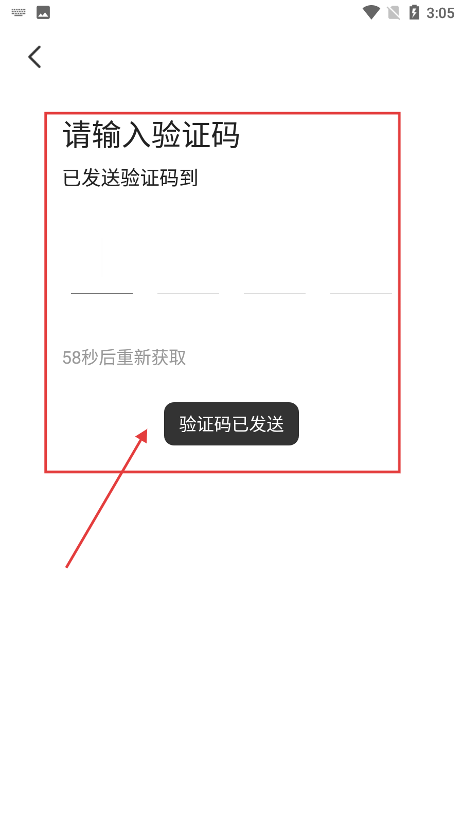 4、在驗證碼輸入頁面,輸入收到的驗證碼,即可完成登錄流程。