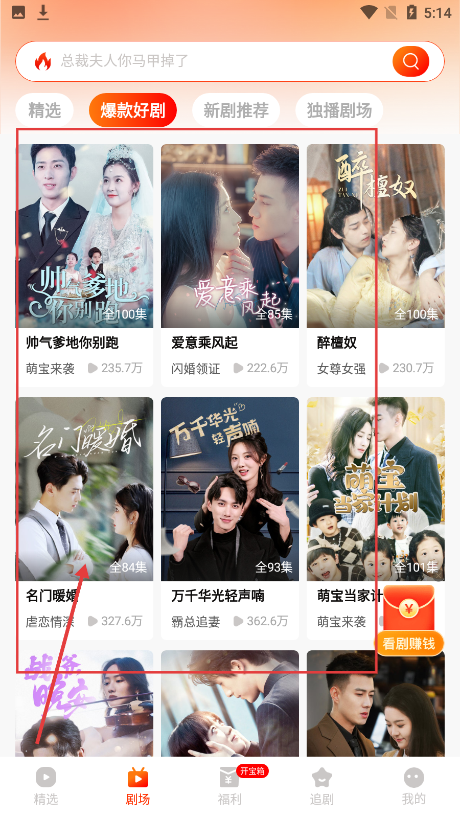1、在劇場界面找到并點擊【爆款好劇】選項,進入對應的列表頁面后,就能瀏覽到各類熱門短劇。