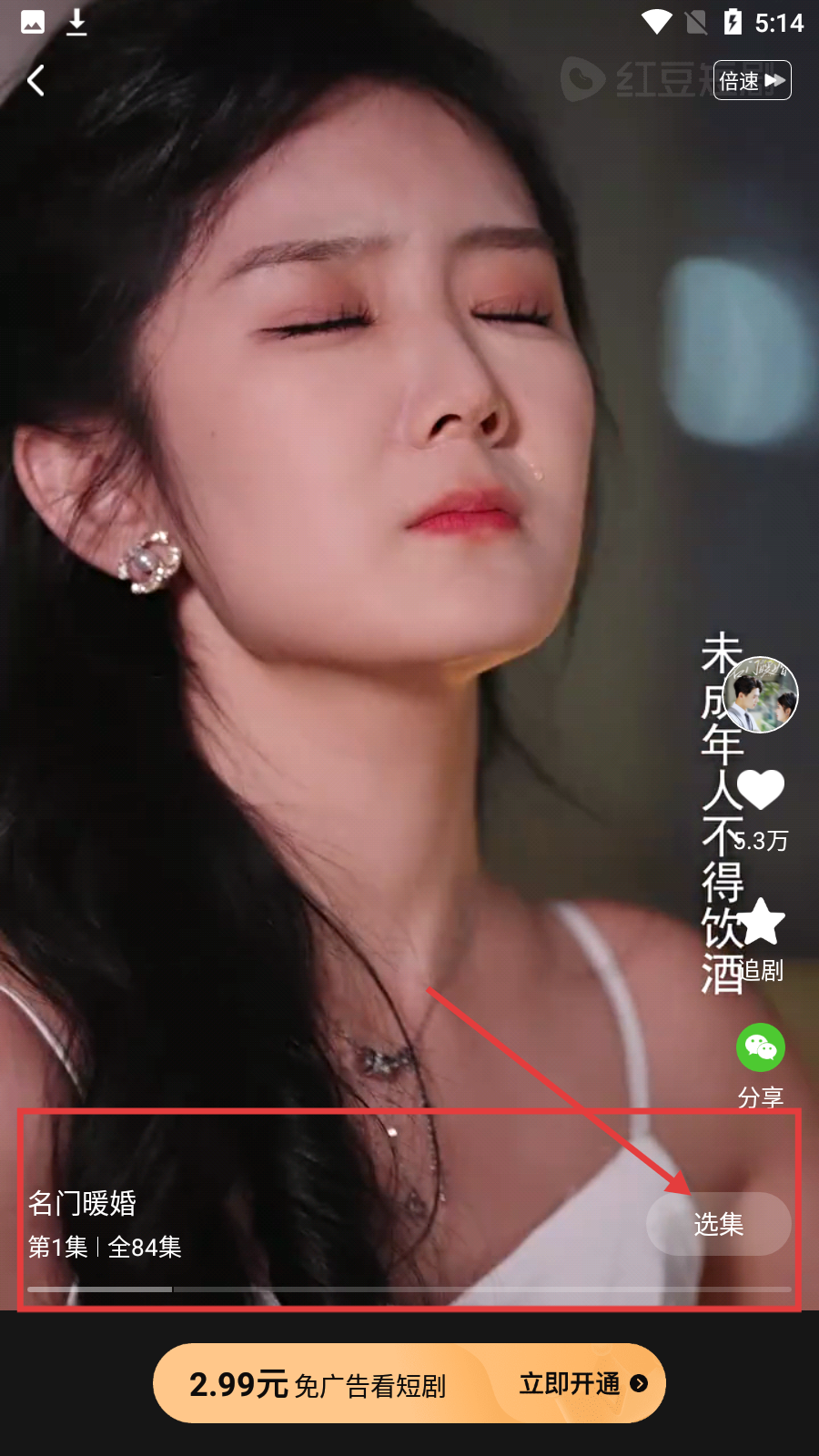 3、在《名門暖婚》播放界面點擊【選集】,進入選集選擇頁面。