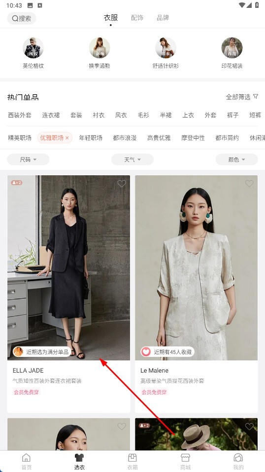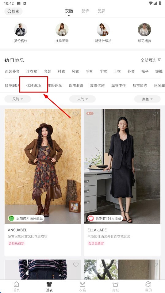 2、在選衣頁面,選擇【優(yōu)雅職場-風(fēng)格標(biāo)簽】,篩選出對應(yīng)風(fēng)格服飾。