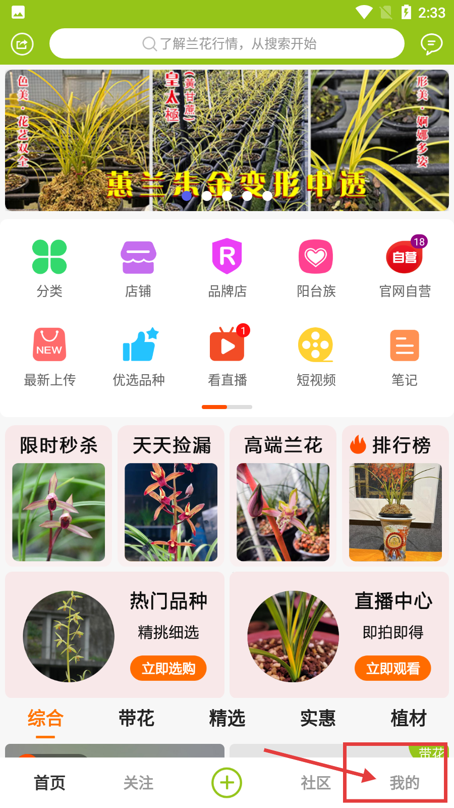 在蘭花交易類主界面,點擊底部導航欄的【我的】選項,即可進入個人中心界面。