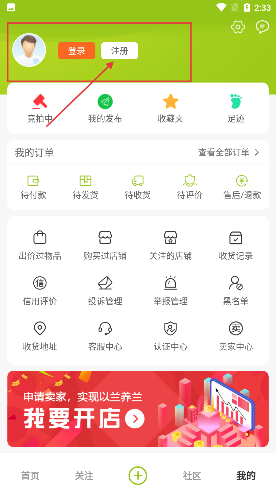 2、在個人中心界面,點擊【注冊】按鈕,可進入注冊流程界面。