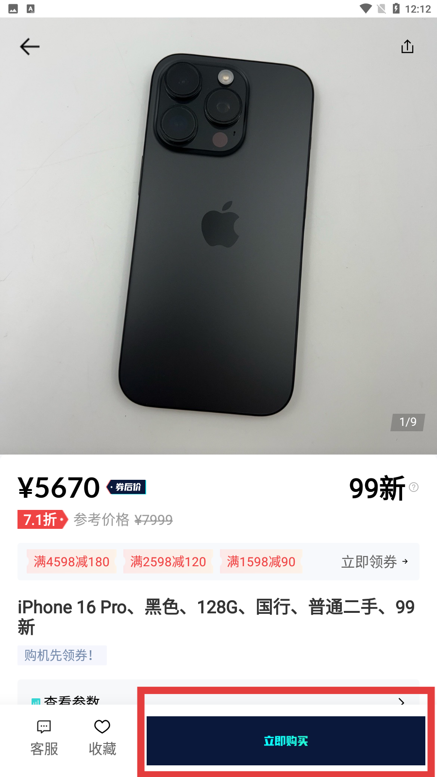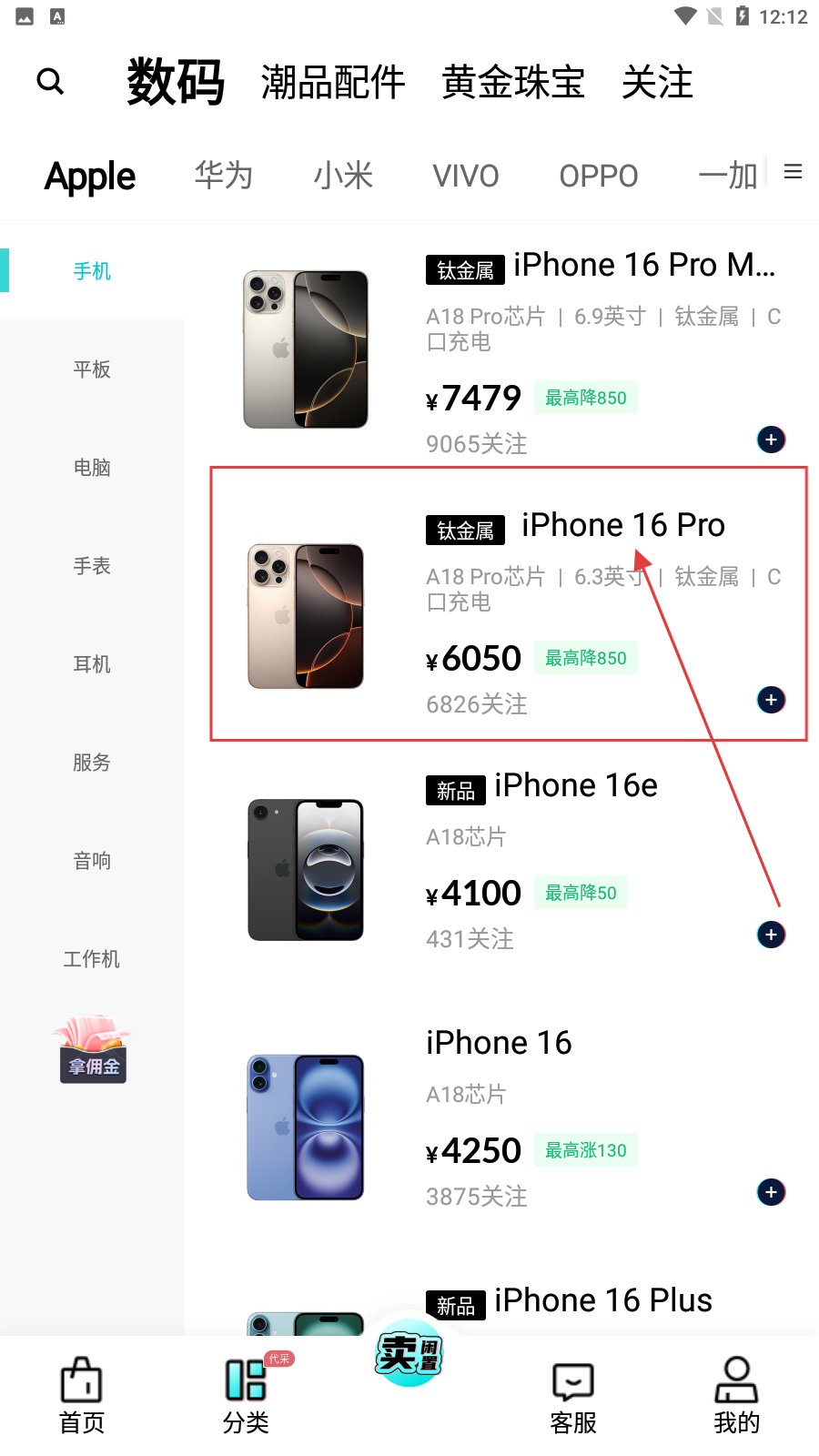 2、在分類頁面,選擇心儀的商品,如iPhone16Pro,進(jìn)入商品詳情頁。