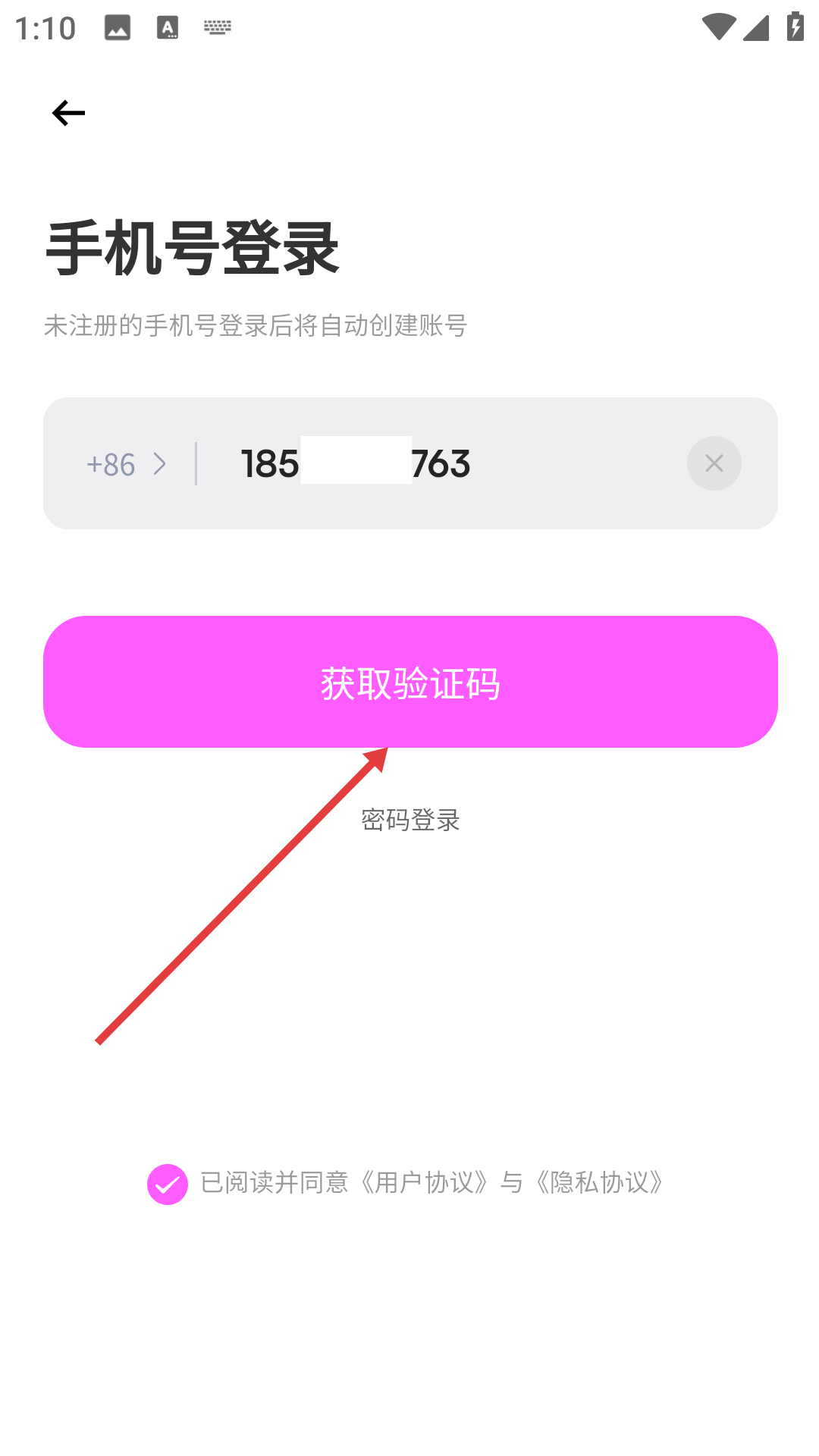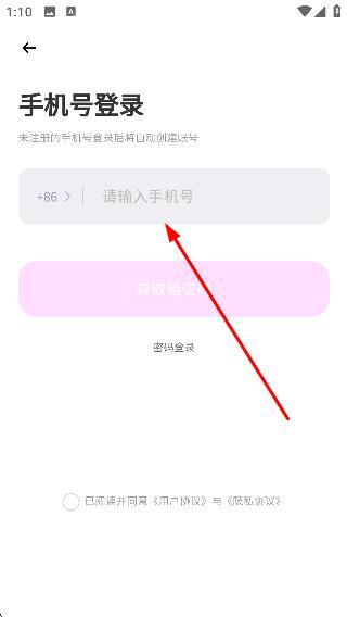 2、在手機號登錄界面輸入手機號,準備進行下一步操作。