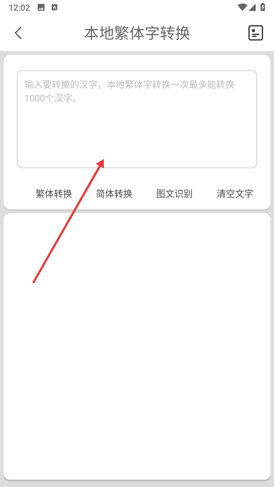 4、在轉換界面的輸入框中輸入要轉換的漢字,即可進行本地繁體字轉換,一次最多可轉換1000個漢字。
