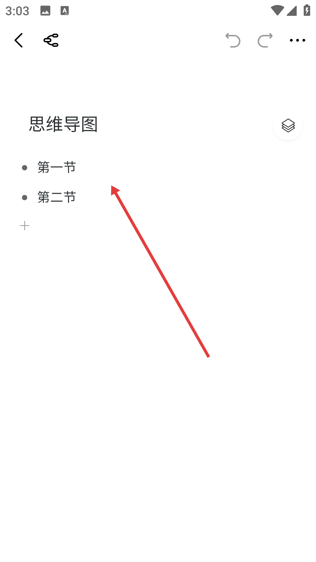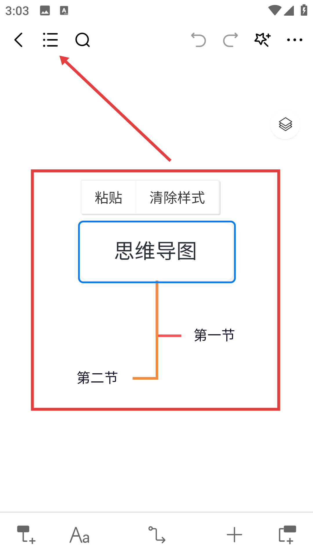 3、切換到列表視圖后,可查看思維導圖的文本結構,包括【第一節(jié)】【第二節(jié)】等內容。