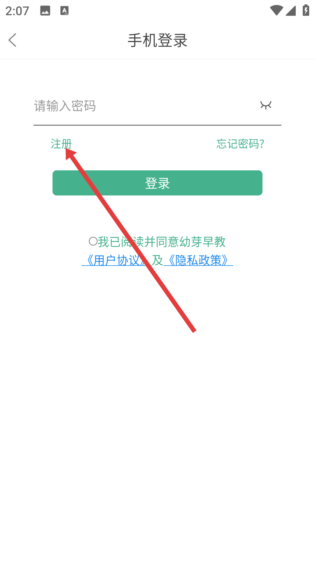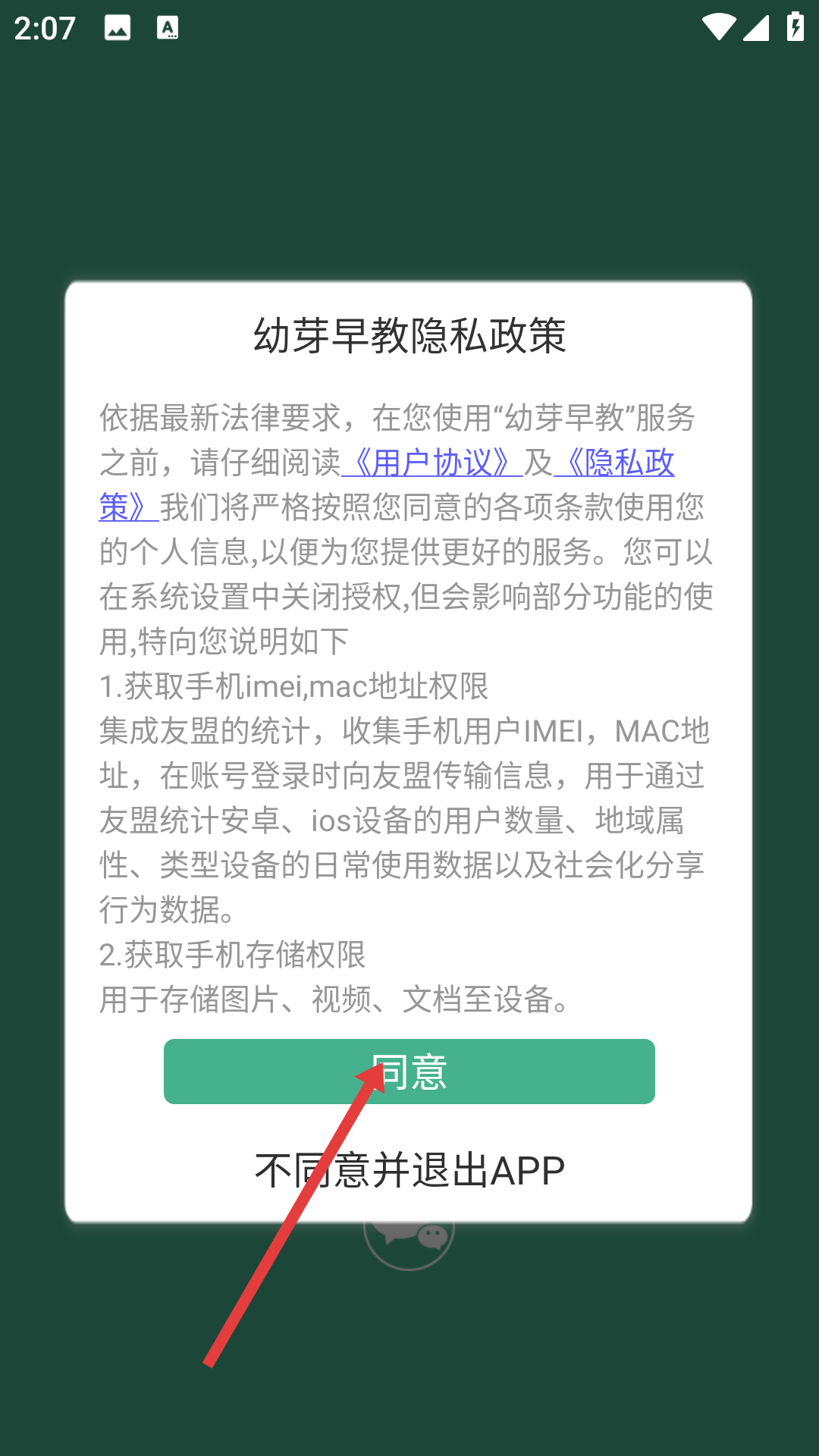 1、在“幼芽早教隱私政策”頁面,點擊【同意】按鈕,即可進(jìn)入登錄環(huán)節(jié)。