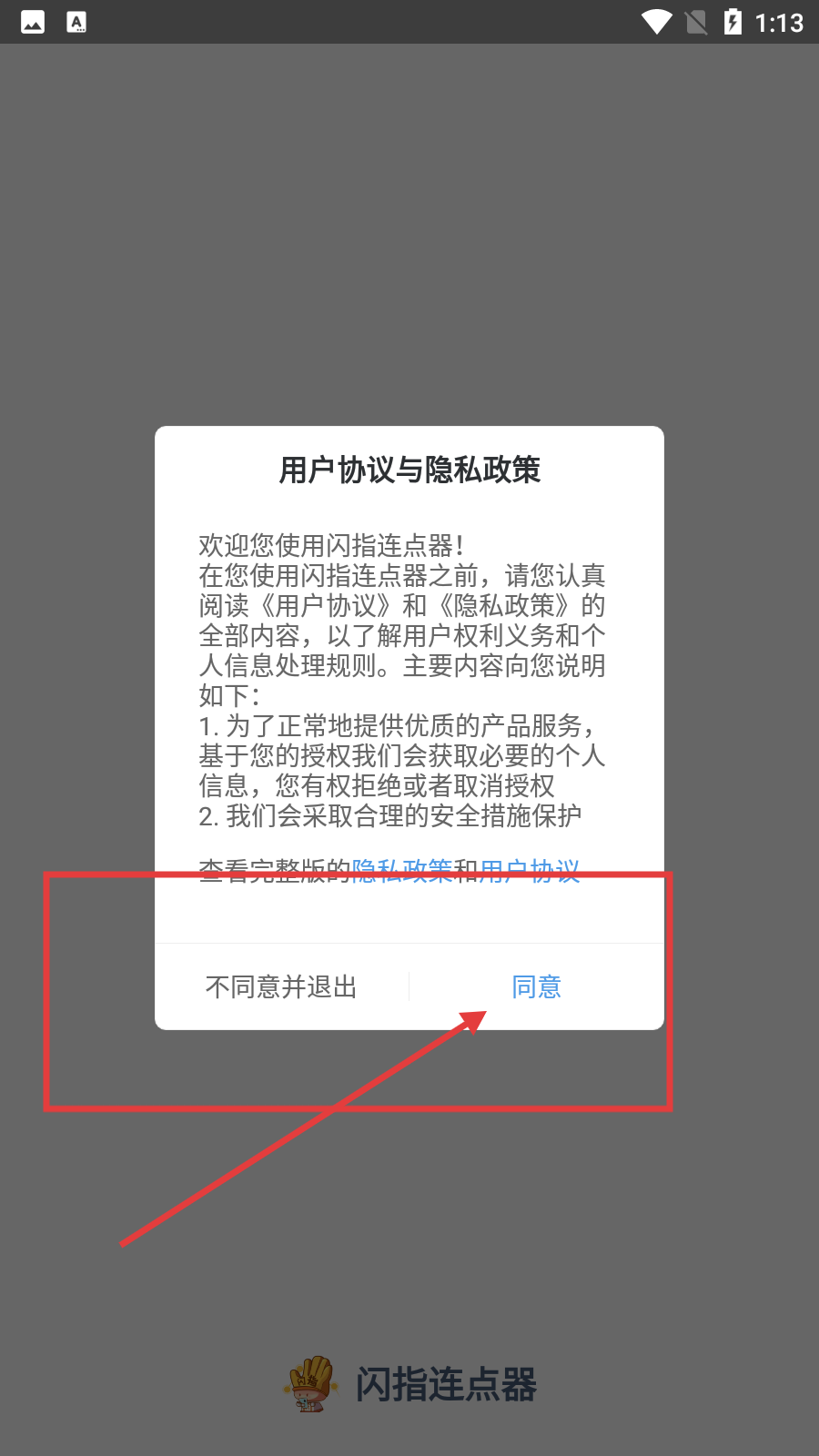 1、啟動【閃指連點器】時,需閱讀《用戶協議》與《隱私政策》,點擊【同意】按鈕即可進入。