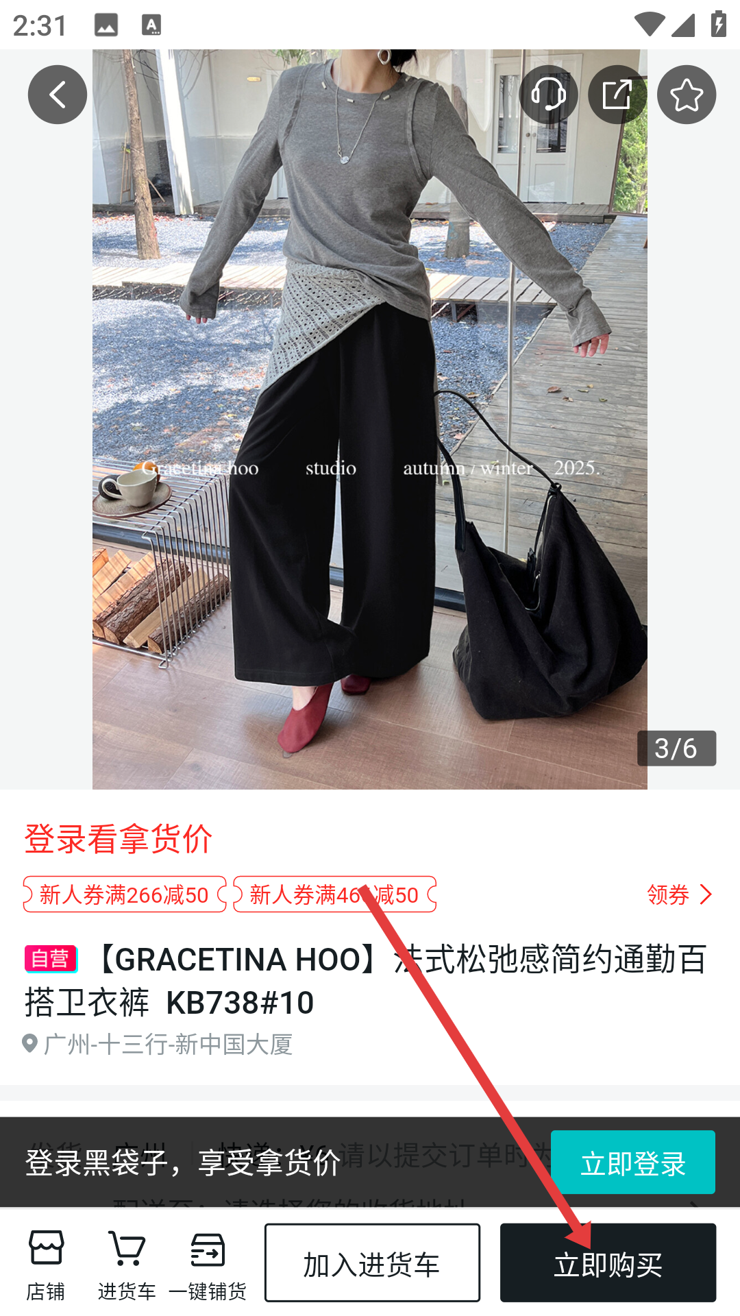 3、在衛(wèi)褲商品列表頁面,點(diǎn)擊心儀的衛(wèi)褲商品,進(jìn)入商品詳情頁,可查看商品信息并進(jìn)行采購操作。
