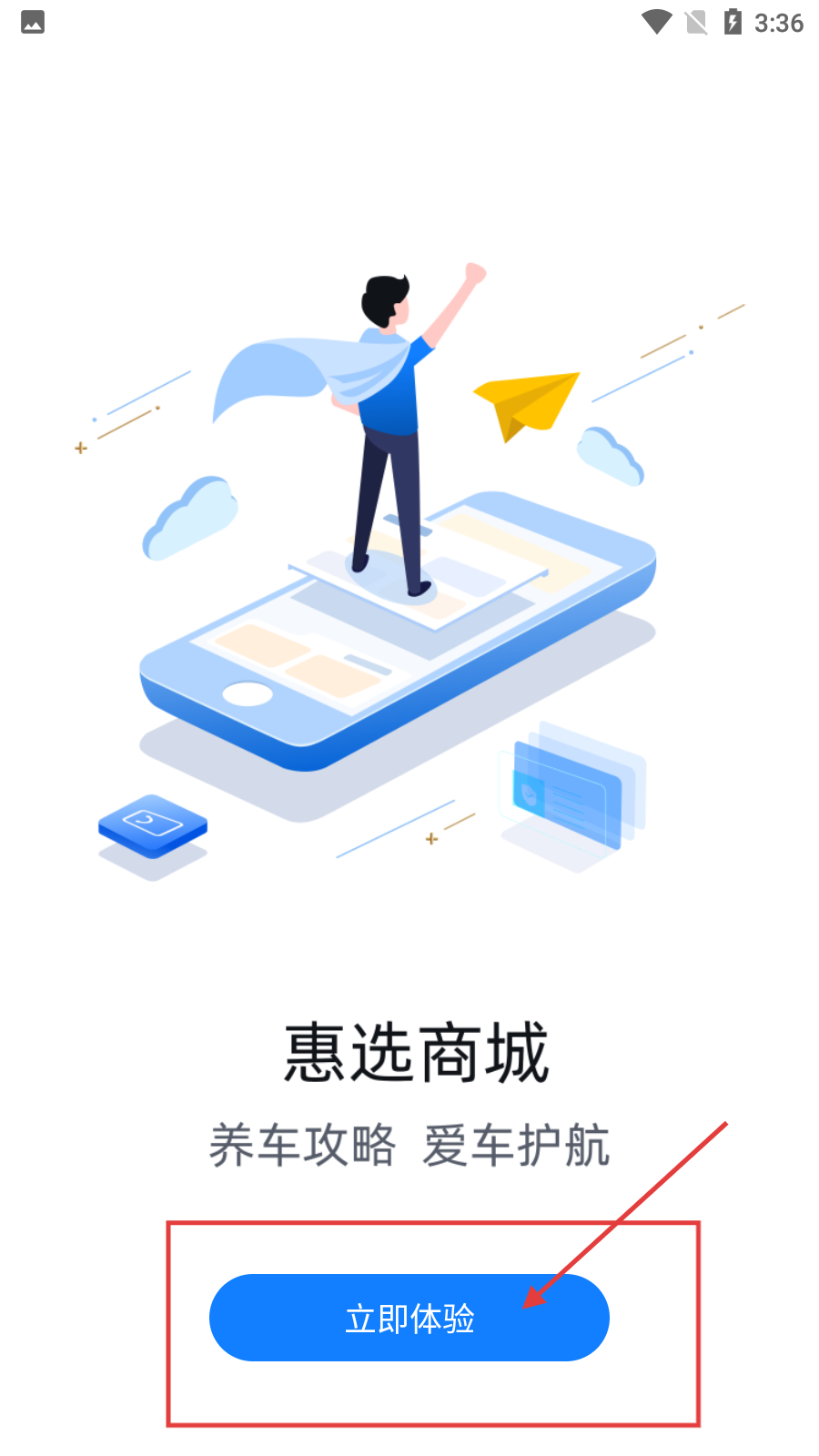 2、若有【惠選商城】模塊,可點擊【立即體驗】進入,獲取養(yǎng)車攻略等相關(guān)服務(wù)。