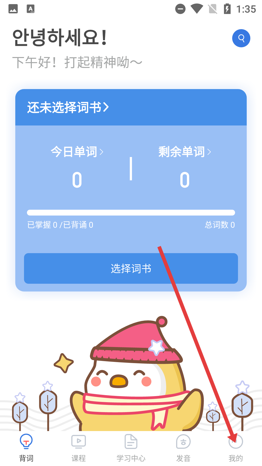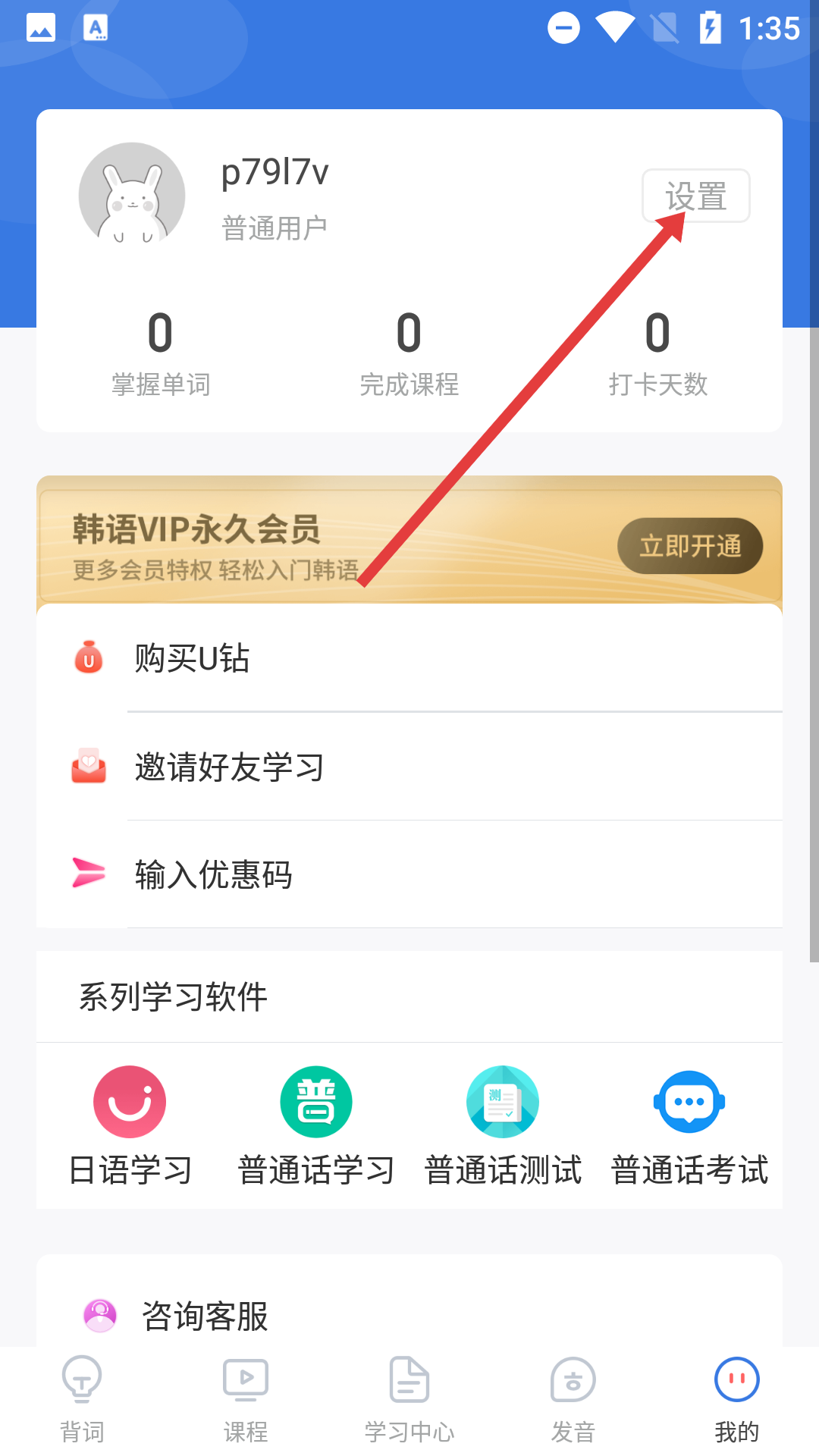 1、在背單詞的主界面,點(diǎn)擊右下角的【我的】按鈕,即可進(jìn)入個(gè)人中心頁面。