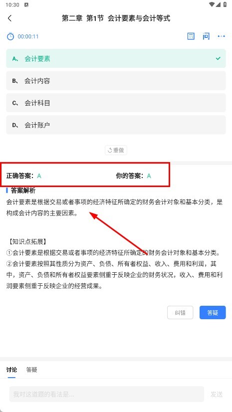 4、提交答案后,可查看【正確答案】和【答案解析】,了解知識點。