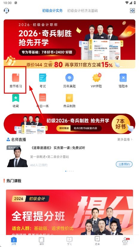 1、點擊【章節(jié)練習】功能按鈕,進入章節(jié)練習頁面。