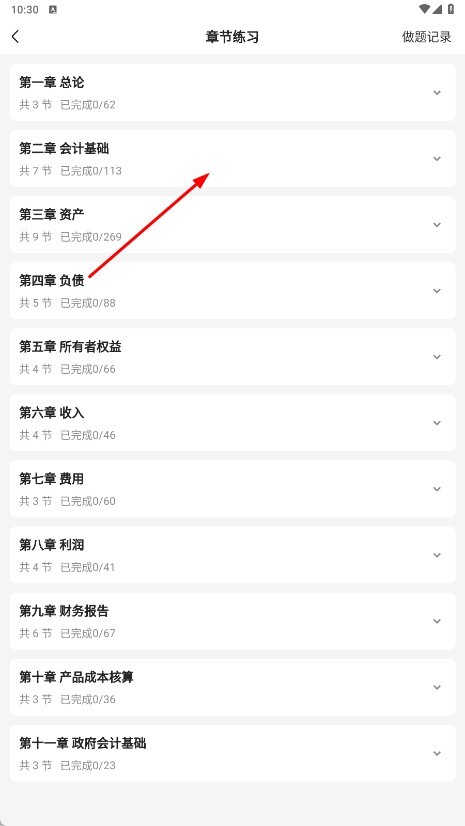 2、在章節(jié)練習頁面,選擇要練習的章節(jié),如【第二章會計基礎-章節(jié)名稱】。