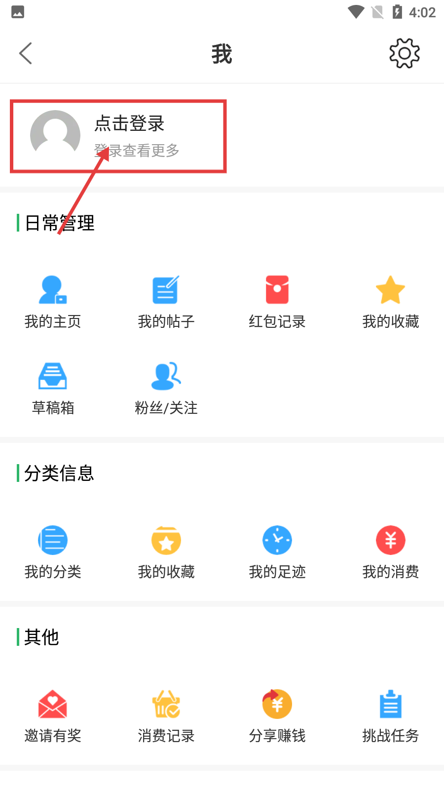 2、在個人中心頁面點擊【點擊登錄】,進入登錄界面。
