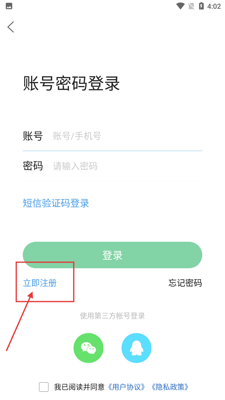 3、在登錄界面點擊【立即注冊】,進入注冊頁面。