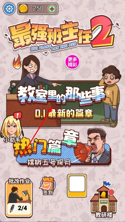 1、開啟游戲后,在主界面找到熱門篇章的關(guān)卡入口并點擊,即可進入對應(yīng)的班級管理場景。