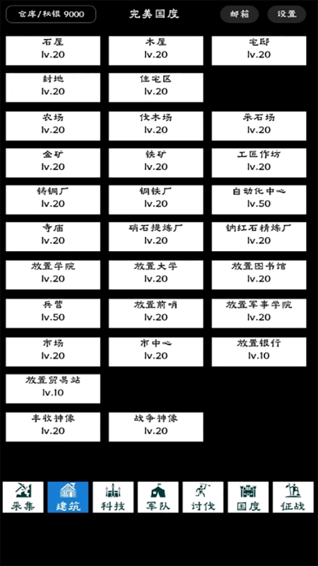 融合了模擬經(jīng)營、放置策略、模擬戰(zhàn)爭等多種玩法。玩家需要收集資源、建設(shè)建筑、解鎖科技、訓練兵種并指揮戰(zhàn)斗,每個環(huán)節(jié)都充滿策略性,決策會影響國家發(fā)展,增加了游戲的深度與可玩性。
