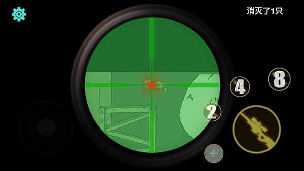 3、點(diǎn)擊右邊的2,4,8可以放大倍鏡,更加方便瞄準(zhǔn)老鼠。