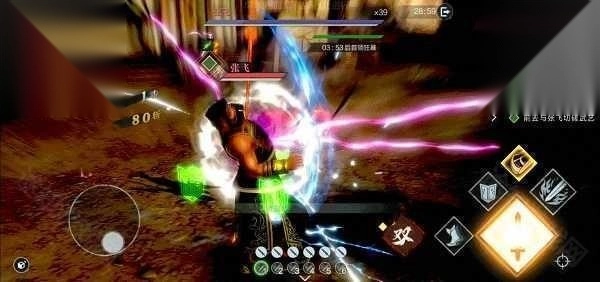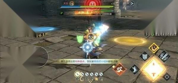 第四階段,大戰(zhàn)關羽。這個首領戰(zhàn)場景與對戰(zhàn)張飛時差不多,同樣有兩個光圈,但關羽的強度明顯強過張飛,擁有大量的連擊技能,攻勢更為迅猛。首領戰(zhàn)4分鐘后進入狂暴狀態(tài)。