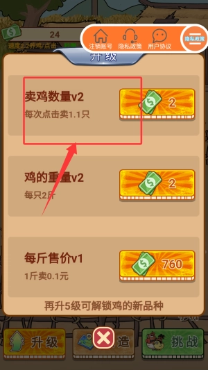 3、通過農(nóng)場收益升級禽舍規(guī)模,逐步提升單次禽類出欄數(shù)量至50只。