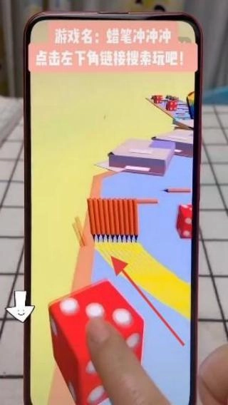 1、點擊屏幕上的骰子(比如紅色骰子),利用骰子的點數(shù),使蠟筆隊列順著黃色路徑移動,移動過程中收集鉛筆之類的道具。
