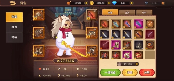 2.每個裝備都有特定的屬性和效果,屬性和效果會影響你在戰(zhàn)斗中的表現(xiàn)和收益;