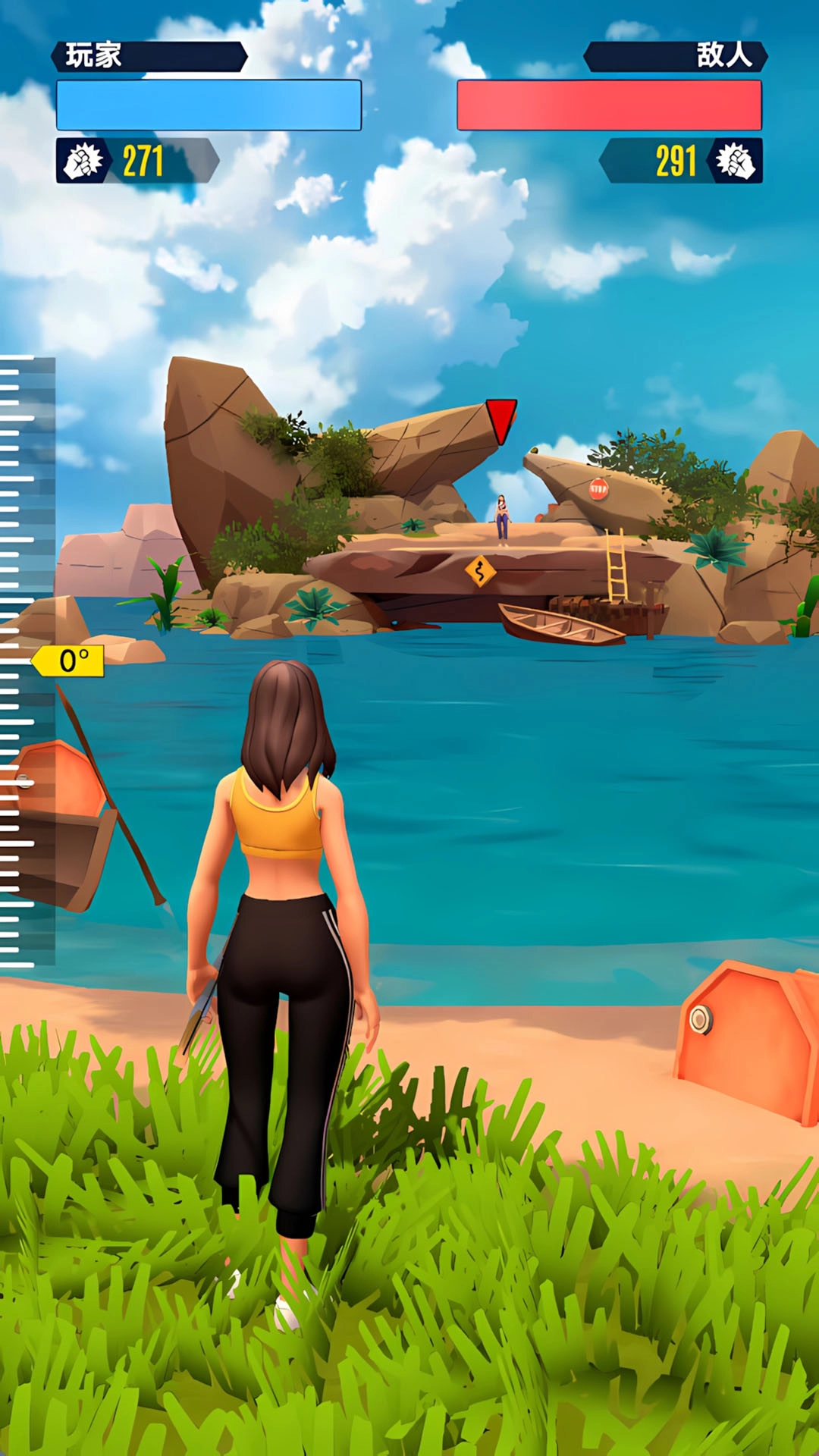 1、選擇弓箭作為武器進(jìn)入競技場,通過虛擬搖桿操控角色移動(dòng),點(diǎn)擊瞄準(zhǔn)鍵進(jìn)行攻擊。