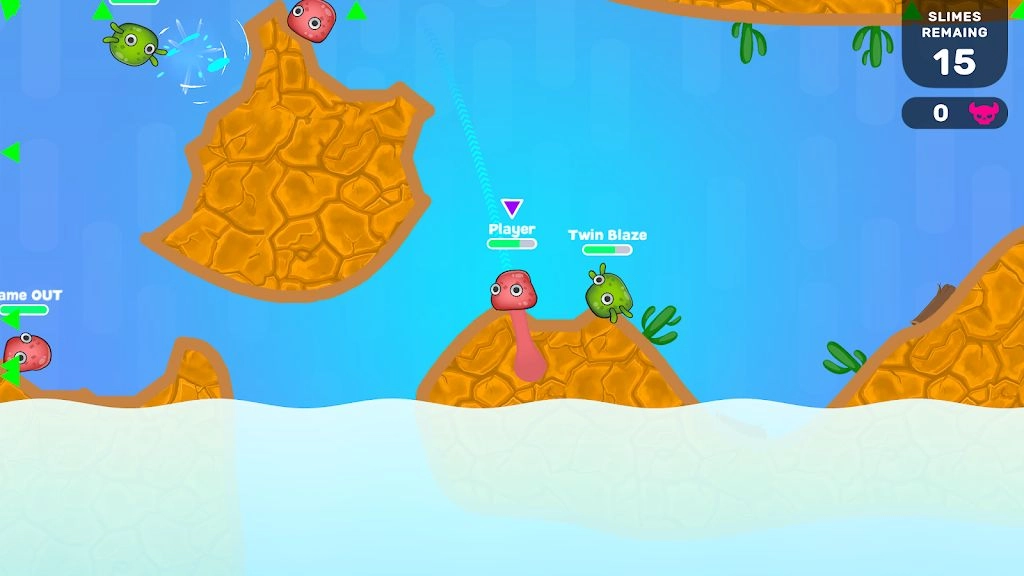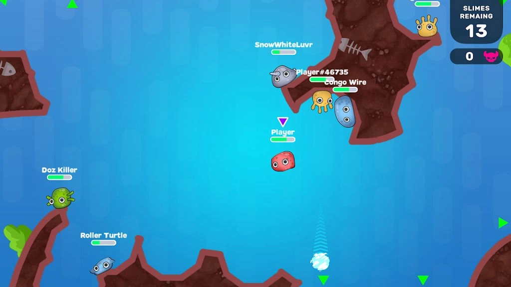 2.每位史萊姆初始擁有固定血量,受到攻擊會(huì)減少,血量歸零即被淘汰,最后存活的玩家成為勝利者。