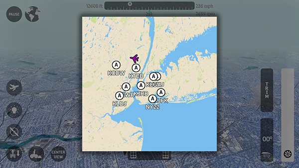 4、打開右上角地圖,選擇要前往的機場,往指定方向飛行就可以了。