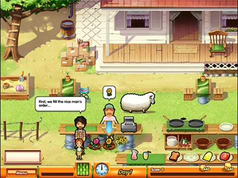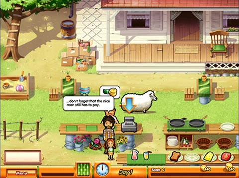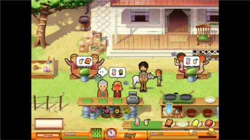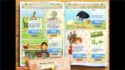 游戲畫面延續(xù)這個(gè)系列清新明快的風(fēng)格,各種圖象繪制的精致細(xì)膩、卡通感十足。配合農(nóng)場(chǎng)主題,展示出秀麗的田園場(chǎng)景以及多元化的餐廳環(huán)境,玩家也可以在過關(guān)后購買一些裝飾品把餐廳裝飾的更為華麗。