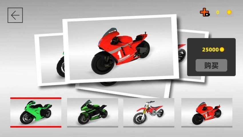 2、玩家可根據(jù)喜好和駕駛技術(shù)挑選,不同摩托車在速度、操控性等方面有所不同。
