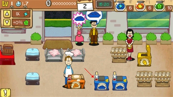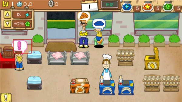 9、客人用餐完畢后會前往結(jié)賬區(qū)域,玩家只需點擊紅色感嘆號,系統(tǒng)便會自動完成錢幣結(jié)算。