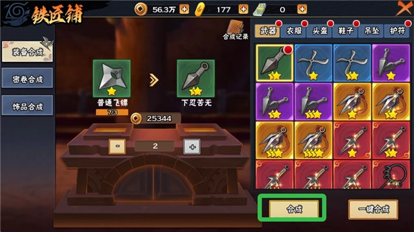把普通裝備合成升級(jí)到下忍、中忍、上忍這些等級(jí),同樣能夠快速提升裝備的各項(xiàng)屬性。