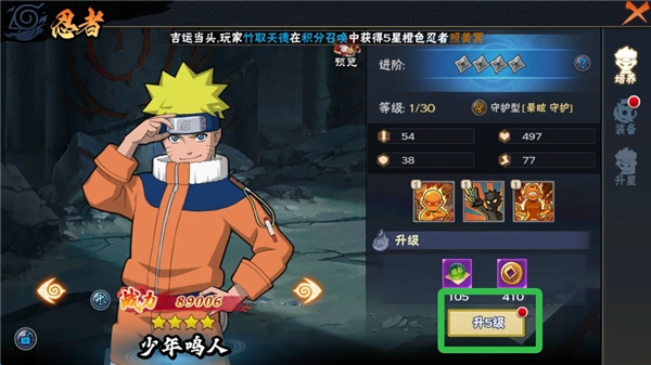 提升忍者等級(jí)能夠讓攻擊、速度、防御等屬性得到快速增長(zhǎng)。