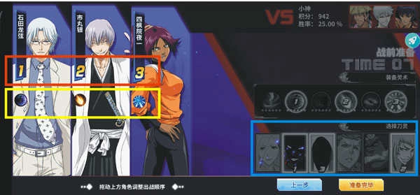 藍色款123代表刀靈使用順序(1代表刀靈最先使用順序),并且可以點擊來排序。