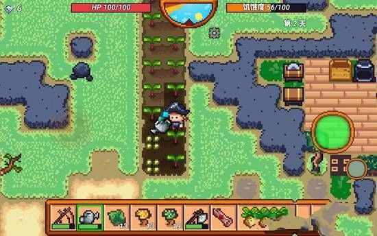 將背包里的種子放到屏幕下方物品欄,然后點(diǎn)擊種子選擇它,然后將主角對(duì)著開墾的土地點(diǎn)擊右側(cè)綠色按鈕即可播種了。