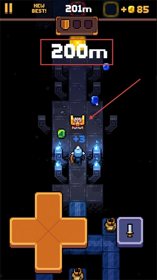 3、到達(dá)【200m】標(biāo)記處,擊敗出現(xiàn)的BOSS,獲取掉落的寶石,繼續(xù)向更深處推進(jìn)。