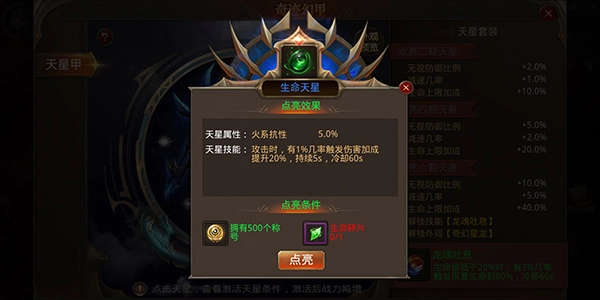 生命天星屬性為:火系抗性5.0%
