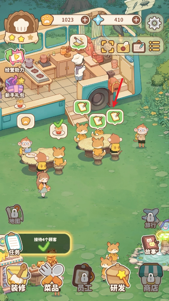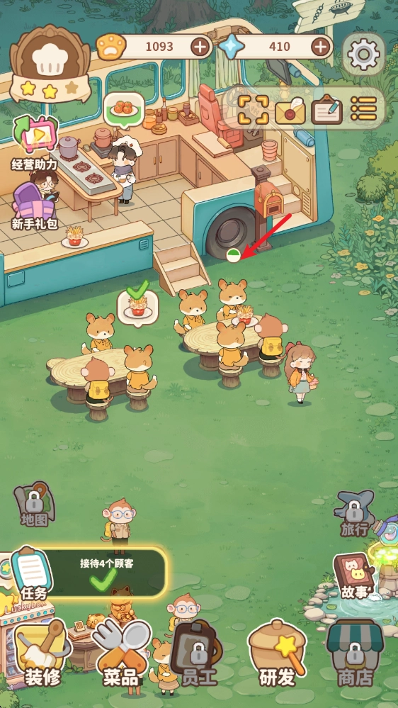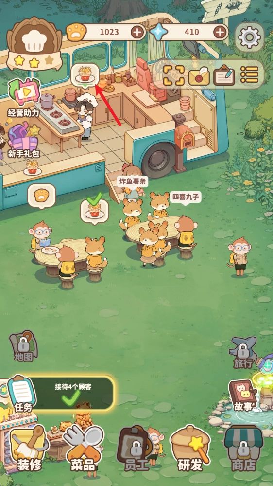 進入游戲后便開啟經(jīng)營模式,會有絡(luò)繹不絕的客人前來,他們會自行尋找空位就座。